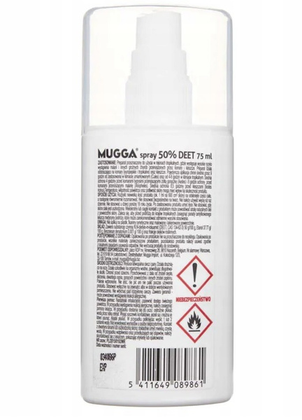 Mugga Spray 50% DEET w formie płynnej do bezpośredniej aplikacji na odzież i odkryte części ciała - to najwyższej jakości repelent chroniący ciało ludzkie przed różnego rodzaju groźnymi dla zdrowia insektami m.in.