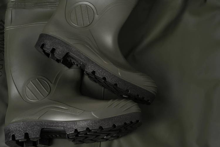 Kalosze posiadają podeszwę z bieżnikiem, co gwarantuje dużą stabilność nawet na śliskim podłożu.