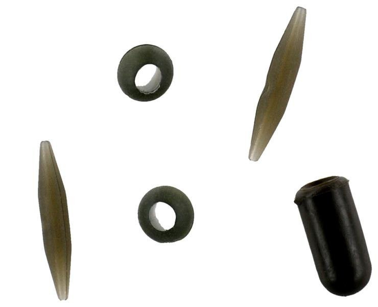 Zestaw 3 kompletów akcesoriów do tworzenia zestawów helikopterowych. Zawiera gumowe stopery naciągane na leader lub leadcore, koraliki blokujące oraz osłonkę na krętlik ciężarka.