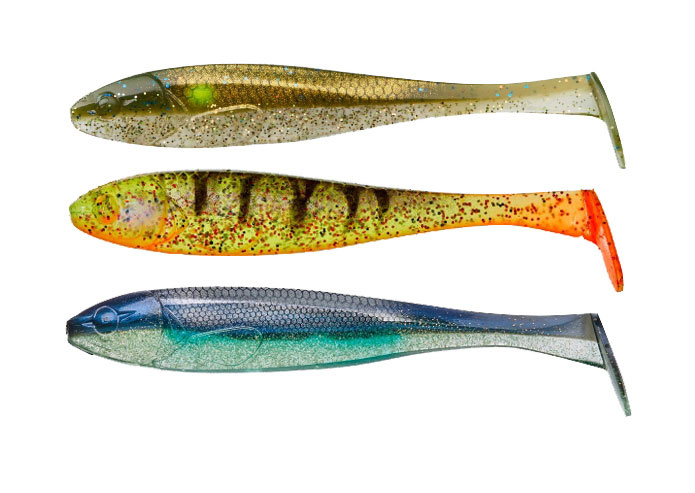 Zestaw 3 przynęt gumowych Illex Slim Shad w rozmiarze 14cm i wadze 24g.