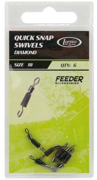 Lorpio Snap Swivel Diamond to doskonały krętlik specjalnie przeznaczony do łowienia feederem. Lekki i dyskretny, pozwala na wymianę przyponu w ciągu paru sekund. Dzięki specjalnej konstrukcji działa także jako element antysplątaniowy, gdyż zmniejsza możliwość splątania się przyponu wokół pozostałej części zestawu.