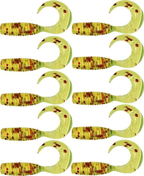 Zestaw twisterów RELAX 4cm 10szt vr1-ts337 Chartreuse-Red Glitter