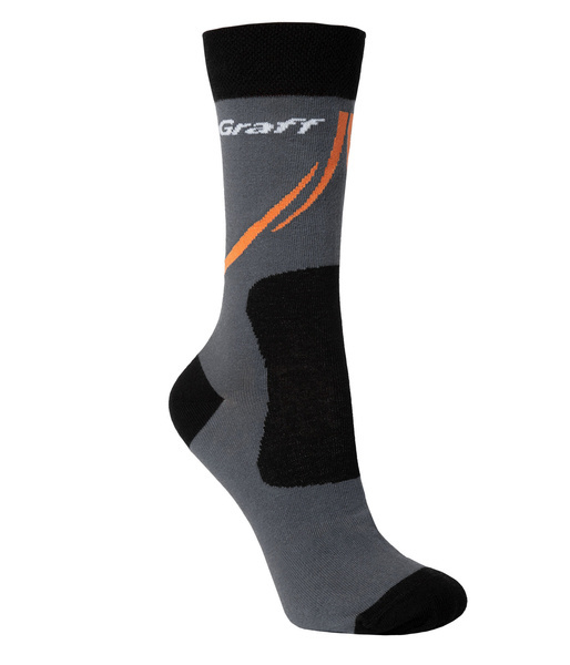 • Skarpety Graff Anti Bacterial wykonane z tkaniny, która skutecznie redukuje przykry zapach potu i podtrzymuje równowagę biologiczną skóry stopy.