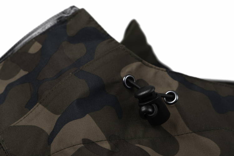 Kurtka Aquos zapewni Ci komfort podczas każdego deszczu - ochrona 25000mm słupa wody. Nie ważne ile razy będziesz wywoził zestaw na drugi koniec zatoki będziesz się czuł komfortowo. Wysoki kołnierz chroni przed ostrym zacinającym wiatrem. Jest to model o przedłużonym dole także, nasze siedzenie będzie dodatkowo chronione nie tylko przez spodnie. Mankiety w rękawach są dodatkowo podszyte neoprenem, który wzmacnia zabezpieczenie przed spływającą woda po ręce. Całość w kolorze oliwkowej zieleni z dodatkami FOX Camo.