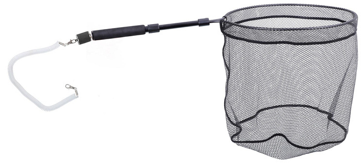 • Wygodny podbierak z krótką rączką, niezbędny podczas brodzenia w poszukiwaniu drapieżników zarówno podczas spinningowania jak i połowu na muchę.