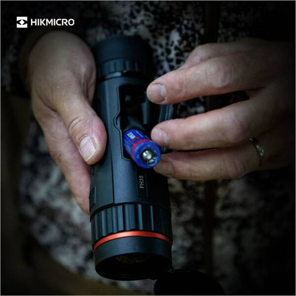 Urządzenie jest zasilane wymiennym akumulatorem, który zapewnia do 5 godzin ciągłej pracy. Możliwość podłączenia powerbanka przez port USB-C daje pewność, że kamera nie zawiedzie nawet podczas długich sesji obserwacyjnych. Kompaktowe wymiary i masa zaledwie 505 g czynią HIKMICRO Falcon FQ35 wygodnym i łatwym w użyciu.