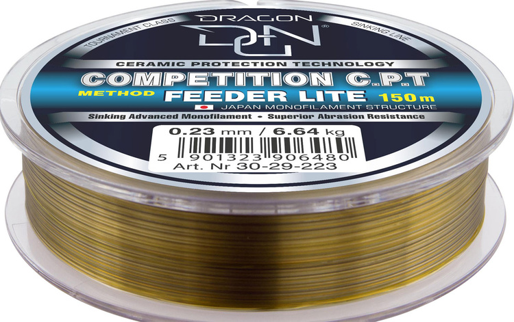 • Żyłka DRAGON C.P.T Competition Feeder Lite – idealna do połowów metodami feeder i method feeder. Niska rozciągliwość, świetna sygnalizacja brań, wysoka odporność na uszkodzenia oraz powłoka ceramiczna to kluczowe cechy tej żyłki.
