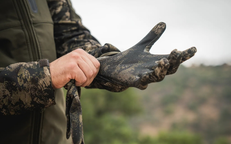 Rękawice z antypoślizgową powłoką na palcach i dłoniach, zapewniające pewny chwyt broni i akcesoriów.