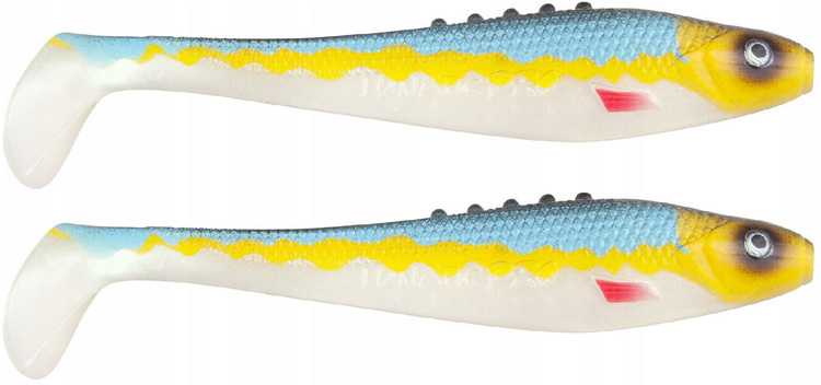 Lunatic w rozmiarach od 10 do 15 cm wykonany jest z nieco sztywniejszego tworzywa. Taka budowa powoduje mocniejsze przenoszenie sił generowanych przez pracę ogona na korpus przynęty i w efekcie jego silne kolebanie się na boki. Generuje to bardzo silną falę hydroakustyczną, a we w miarę czystej wodzie zwiększa ilość bodźców wzrokowych.