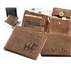 • Portfel skórzany Dzik - brązowy, kompaktowy (13×10 cm), z tłoczeniem dzika. Idealny dla myśliwych. Zapakowany w eleganckie pudełko.