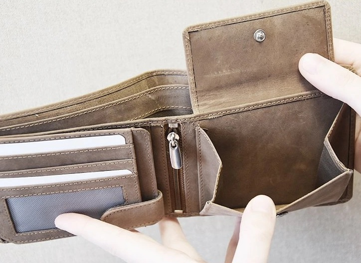 • Kieszonka na monety - klasyczny dodatek, zapobiegający wypadaniu bilonu.