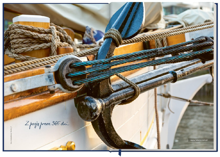 Inspiracja i estetyka - Publikacja wzbogacona kolorowymi fotografiami i ilustracjami o tematyce morskiej, które wprowadzają klimat żeglarskiej przygody. Dla wielu użytkowników terminarz staje się również źródłem inspiracji do planowania kolejnych wypraw.