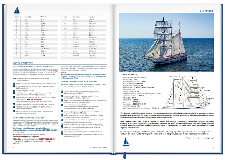 Zawartość tematyczna żeglarska - Zawiera specjalne informacje przydatne każdemu żeglarzowi: numery alarmowe, zasady „prawo drogi” na wodzie, kursy jachtu względem wiatru, budowę jachtów, sygnały wzywania pomocy i systemy ostrzegawcze, instrukcję pierwszej pomocy.