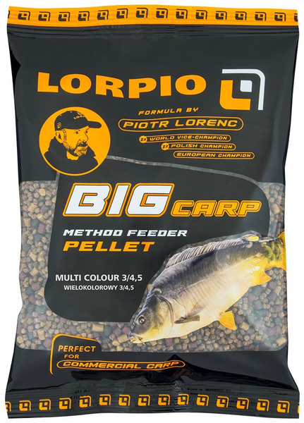 Profesjonalny wielokolorowy pellet zanętowy Lorpio Big Carp stworzony z myślą o efektywnym łowieniu dużych ryb metodą feeder, method feeder. Doskonale sprawdza się w podajnikach zanętowych – łatwo się formuje, dobrze trzyma i stabilnie pracuje w wodzie, skutecznie przyciągając ryby nawet przy intensywnym nęceniu.