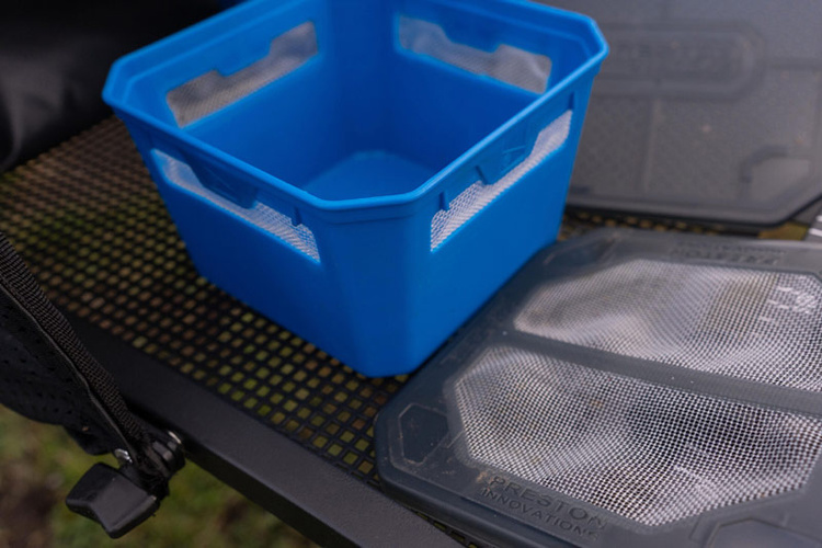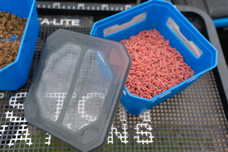 Wentylowana konstrukcja zwiększa komfort użytkowania: przynęty pozostają aktywne i nie „pocą się”, co jest szczególnie ważne w ciepłe dni lub podczas intensywnego łowienia. Solidne tworzywo sztuczne zapewnia trwałość i odporność na odkształcenia, a możliwość piętrowania pojemników ułatwia organizację sprzętu w torbie lub na tacy.
