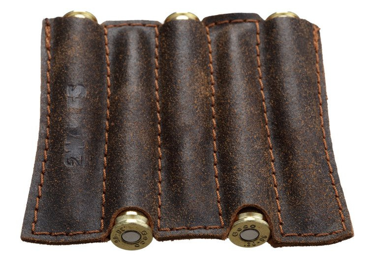 Skórzana ładownica kieszonkowa na 5 sztuk amunicji kulowej, wykonana z naturalnej skóry.