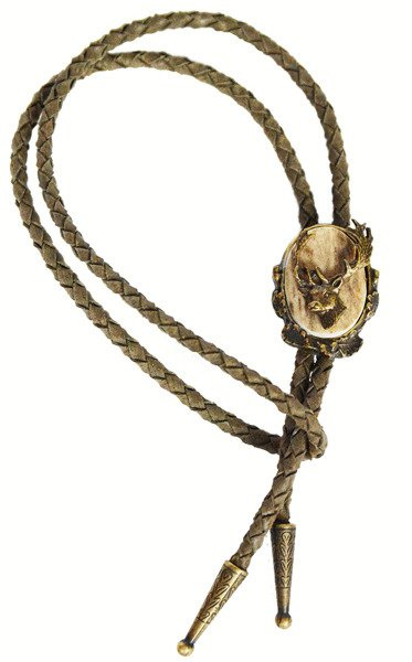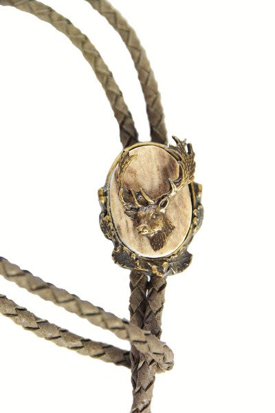 • Eleganckie bolo myśliwskie / krawatka/ krawatnik wykonane z mosiądzu. Motyw jelenia / dzika/ rogacza/ św. Huberta umieszczony jest na plastrze z poroża. Całość zawieszona na plecionym rzemieniu zakończonym ozdobnymi końcówkami.