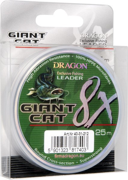 Giant Cat to specjalistyczna plecionka do połowu sumów. Dzięki zastosowaniu techniki ośmiosplotowej, plecionka Giant Cat 8X jest wyjątkowo mocna i w pełni okrągła w przekroju a jednocześnie elastyczna i pozbawiona pamięci kształtu.